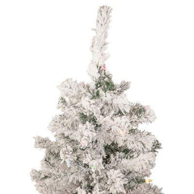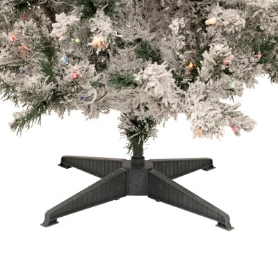 Add a festive glow to your space with this lighted artificial holiday tree. This tree is sure to make your home more welcoming and attractive for a holiday gathering. Your guests will love to capture some of their beautiful pictures in front of this lovely decor.Product Features: Pre-lit with 250 multi-color lights Multi-color consists of red, orange, yellow, blue, green and pink bulbs Bulb size: mini 270 tips 2.5″ wide tips 34″ green lead cordFlame resistant Additional Product Features: Medium tree profileLight sets on the tree are UL certified and approved for indoor or outdoor use, however the tree itself is recommended for indoor use onlyIf one bulb burns out, the rest will stay lit Lights are equipped with Lamp Lock feature, which makes them replaceable, interchangeable and keeps them from falling out 3-piece easy assembly (including stand) Comes with a plastic tree stand Wire gauge: 22120 volts, 60 hertz, .34 amps, 40.8 wattsDimensions: 4.5′ high (from the base of stand to the top of the tree)Distance from floor to the first row of branches: 9″ 28″ base diameter (at the widest point) Material(s): PVC/flocking/metal/wire/glassNote: Branches are compressed for shipment, and need to be fluffed out upon arrival to look like the photo.