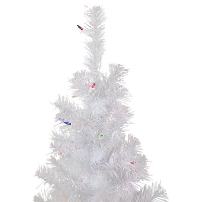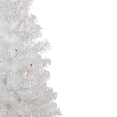 With its immaculate color and generous profile, the Rockport White Pine holiday tree glistens with wintry beauty. It is a designer-inspired alternative to a traditional green tree with its dazzling white pine needles. The branches contain a mix of matte white and clear iridescent needles that create texture and add depth to the tree. The iridescent needles beautifully reflect the soft glow from the multi-incandescent mini lights. This tree is perfect for a quick and easy setup and ideal for corners or tabletops. Product Features:Pre-lit with 70 multi-color lightsMulti-color consists of red, green, blue, purple and orange bulbsBulb size: miniBulb type: incandescent110 tips1.5″ – 2.5″ wide branch tips28″ white lead cordSlim profile treeWire gauge: 22120 volts, 60 hertz, .24amps, 28.8 wattsAdditional Product Features:Light sets on tree are UL listed for indoor or outdoor use, however, the tree itself is recommended for indoor use only If one bulb burns out, the rest will stay litLights are equipped with Lamp Lock feature, which makes them replaceable, interchangeable and keep them from falling out2-piece easy assembly (including stand)Includes a white plastic tree standWire gauge: 22120 volts, 60 hertz, .24amps, 28.8 watts Dimensions: 4′ high (from the base of the stand to the top of the tree)Distance from floor to the first row of branches: 6″24″ base diameter (at the widest point)Material(s): PVC/plastic/glass bulbs/wireNote: Branches are compressed for shipment, and need to be fluffed out upon arrival to look like the photo.