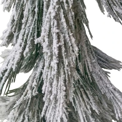 This understated pine sprig tree lets you decorate in small spaces. Delicate, yet realistic tips are downswept creating an elegant vibe. The flocked tips add that special winter feel. Product Features:UnlitRealistic flocked tipsDouble stacked wood tree baseFor indoor use only Dimensions: 47″H x 31.5″W x 31.5″DMaterial(s): PVC/wood