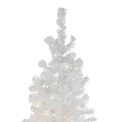Your holiday decor is not complete without the addition of a perfect holiday tree. Bring the essence of wintertime to your home during the holidays with this artificial tree. Display this tree in your living room or foyer, and greet loved ones with a dash of Yuletide cheer.Product Features:Pre-lit with 250 warm clear LED lights”Warm clear” also known as “warm white” has a soft natural incandescent glow, similar to candlelight Bulb size: concave wide angle493 tips2” wide tapered tips37” white lead cordAdditional Product Features:LED lights use 90% less energy Durable non-glass replaceable bulbsCool to the touch Pencil profile treeHinged branch constructionLight sets on tree are UL certified and approved for indoor or outdoor use, however, the tree itself is recommended for indoor use onlyIf one bulb burns out, the rest will stay litLights are equipped with Lamp Lock feature, which makes them replaceable, interchangeable and keeps them from falling out4-piece easy assembly (including stand)Comes with replacement bulbs and spare fusesComes with a FREE white metal tree standWire gauge: 22120 volts, 60 hertz, 0.096 amps, 11.52 watts Dimensions: 6.5’ high (from the base of the stand to the top of the tree)30” base diameter (at the widest point)Material(s): PVC/metal/plastic bulbs/wireNote: Branches are compressed for shipment, and need to be fluffed out upon arrival to look like the photo.
