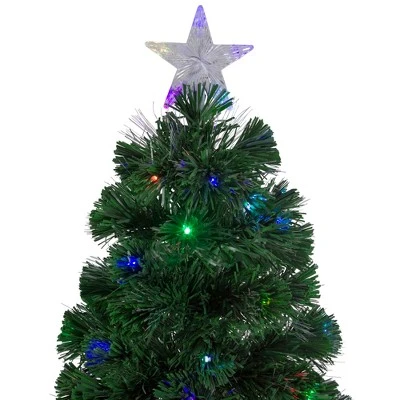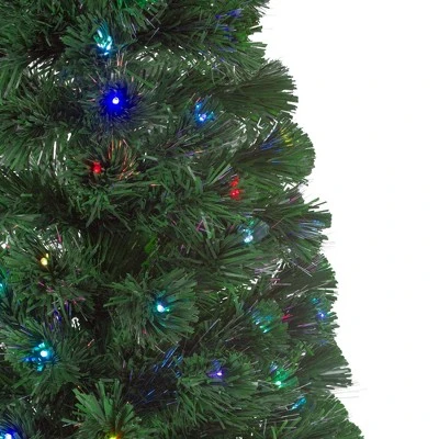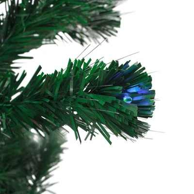 Make holiday decorating a breeze with our updated 6-foot fiber optic holiday tree. The tree comes trimmed with 230 energy-efficient LED’s and fiber optic lights, with soft PVC branches. Set up couldn’t be easier, the tree comes in one piece and includes a metal stand. Product Features:230 branch tips230 LED micro lightsColor changing fiber optic lightsFiber optic colors include: red, green, amber, purple, blue and whiteMedium profile tree2-piece easy assembly (including stand)Light sets on tree are UL certified and approved for indoor or outdoor use, however, the tree itself is recommended for indoor use onlyAC adapter includedComes with a green metal tree standDimensions: 6′ high (from the base of the stand to the top of the tree)35″ base diameter (at the widest point)Material(s): fiber optics/durable plastic pot/PVC/wire