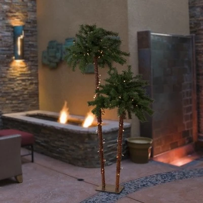 - Prelit Duo Artificial Palm Tree With Brown Metal Stand