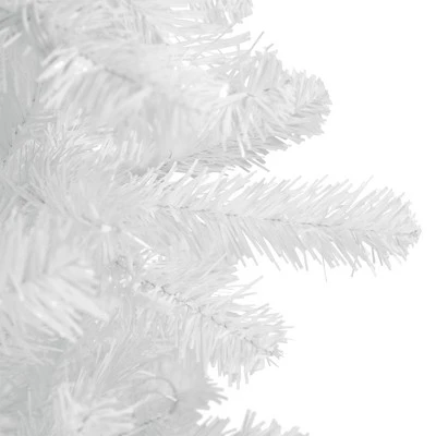 holiday is a time for spreading love and joy with family and friends. Create your own winter white holiday with this lovely tree with shiny white branches. Designed with a hinged branch construction and a 4-piece assembly, it makes setup a breeze. Add lights, ornaments, and ribbons to create a unique decoration. Product Features: Unlit679 branch tipsHinged branch construction4-piece easy assembly (including the stand) Recommended for indoor use only Comes with a white metal stand Pencil profile treeDimensions: 7.5′ high (from the bottom of the base to the top of the tree)Distance from floor to the first row of branches: 10″36″ base diameter (at the widest point)Material(s): PVC/metalNote: Branches are compressed for shipment, and need to be fluffed out upon arrival to look like the photo.