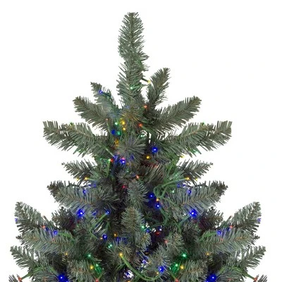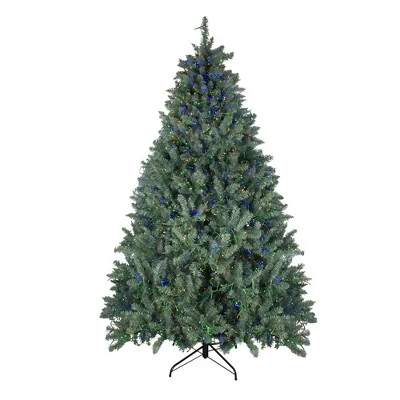 Nothing makes your abode more beautiful than this lighted artificial holiday tree. The ambient glow from the lights attracts more of your guests towards it. It is a must-have accessory to enhance your holiday decor.Product Features:Pre-lit with 3000 dual color LED lightsLights are warm white and multi-color”Warm white” also known as “warm clear” has a soft natural incandescent glow, similar to candlelight Bulb size: micro wide angle2116 tips1.5″ wide branch tipsFull profile tree4-piece easy assembly – including standAdditional Product Features:LED lights use 90% less energy Cool to the touch Light sets on tree are UL certified and approved for indoor or outdoor use, however the tree itself is recommended for indoor use Hinged branch construction If one bulb burns out, the rest will stay litBulbs are non-replaceableComes with a FREE metal tree stand Dimensions: 7.5′ high (from the base of the stand to the top of the tree)60″ base diameter (at the widest point)Material(s): PVC/metal/plastic bulbs/wireNote: Branches are compressed for shipment, and need to be fluffed out upon arrival to look like the photo.