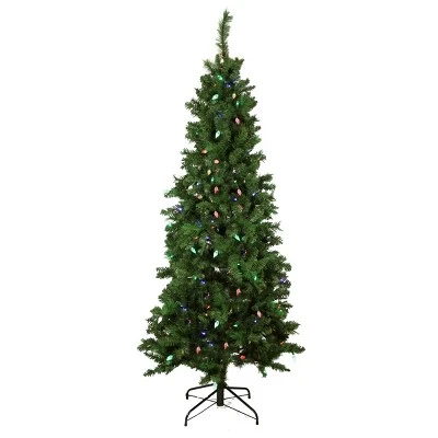 A luxury-oriented tree made of thick and tightly grouped branches, this decor is a versatile piece, as it comes designed with multifunction LED lights. These lights give a brightening touch to your decor with its continuous shimmering glow! Adorn your floor with this needle pine tree decorative to unfold an authentic holiday flavor to fill your haven.Product Features:Pre-lit with a total of 300 warm white multi-function LED lightsBulb size: 240 LED mini bulbs and 60 faceted C6 bulbs”Warm white” also known as “warm clear” has a soft natural incandescent glow, similar to candlelight Multi-color consists of red, green, blue and amber bulbs735 branch tips2″-3.5″ wide tips8′ lead cordSlim profile treeAdditional Product Features:Features Single Plug Power Connect Technology, which provides easy tree set upUnique pole-to-pole electrical connection system, features only one plug and no cords to hassle with throughout the treeNo lining up necessary, simply connect each section together and watch the lights illuminate automaticallyLED lights use 90% less energy Durable non-glass replaceable bulbsCool to the touchHinged branch constructionLight sets on tree are UL certified and approved for indoor or outdoor use, however, the tree itself is recommended for indoor use onlyIf one bulb burns out, the rest will stay lit Comes with replacement bulbs and spare fuseEasy to connect UL adapter with foot-tapper control box3-piece easy assembly (including stand)Comes with a FREE metal tree stand Dimensions: 7′ high (from the base of stand to the top of the tree)36″ base diameter (at the widest point)Material(s): PVC/metal/plastic bulbs/wireNote: Branches are compressed for shipment, and need to be fluffed out upon arrival to look like the photo.