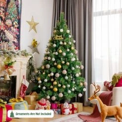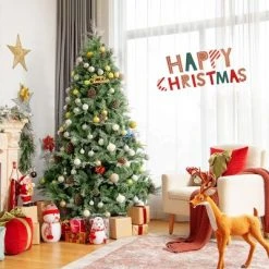 Costway 6FT/7FT Pre-Lit Hinged Christmas Tree with 260/350 Multi-Color Lights No Fluffing Required