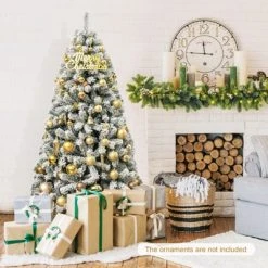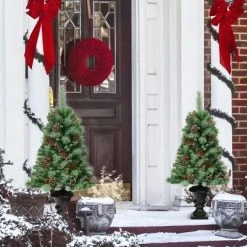 Tangkula 4FT Snow Flocked Artificial Christmas Tree PVC Entrance Tree W/ Pine Cones & Red Berries