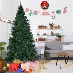 Tangkula 9′ Artificial Christmas Tree PVC Material Metal Stand Holiday Decoration w/ 1000 LED Lights