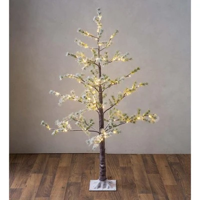 Our Indoor/Outdoor Lighted Snowy Pine Tree creates a magical winter wonderland. Simply beautiful, this elegant tree is eye-catching day or night, inside your home or out in your landscape. With its realistic silhouette and lifelike branches, our snow-kissed pine brings back memories of searching for a Christmas tree in the woods. The posable, light-studded branches are beautiful as-is or they can be decorated with simple ornaments. This tree welcomes the holidays beautifully, but it can also be used as décor all year long. A removable, square plastic mounting base and four ground stakes allow you to place it on a floor or staked in the ground. You can get creative and wrap the base with burlap or faux moss and place the tree in a pot or decorative container. Each electric tree has a 16’L brown lead cord with outdoor UL-approved adapter. Size is approximate. Wire and plastic construction for indoors or out. Easy assembly. Decorative container, accents and ornaments not included.