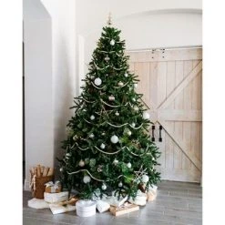 Treetopia Green Alexander Fir 6.5 Foot Artificial Prelit Full Bodied Christmas Tree Holiday Decoration w/ White LED Lights, Premium Stand & Foot Pedal