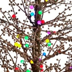 Nearly Natural 4' Pre-Lit LED Flocked Berry Twig Artificial Christmas Tree Multicolor Lights