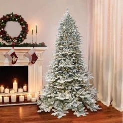 7.5ft Puleo Pre-Lit LED Flocked Full Bennington Fir Artificial Christmas Tree Clear Lights