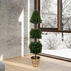 Vickerman Potted Flocked Comet Pine Tree Artificial Christmas Tree Warm White Dura-Lit