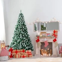 Going out for tree shopping can get hectic. We know that, so we’ve brought you this artificial holiday tree. The buff pine tree sits on a sturdy stand, so it doesn’t fall when you decorate it with ornaments.Product Features:Unlit2429 branch tipsTrim and angular with a neat and finished look to your settingDeep rich green colorMedium profile trees are perfect for those who don’t have a lot of room for a wide treeOut swept silhouette4-Piece easy assemblyComes with a free heavy-duty metal tree stand All metal dura-hinge constructionHeavy gauge branches to support today’s heavier ornamentsDimensions: 7′ high (from the base of the stand to the top of the tree)48″ base diameter (at the widest point)Material(s): PVC/metalNote: Branches are compressed for shipment, and need to be fluffed out upon arrival to look like the photo.
