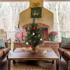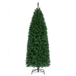 Yaheetech Prelit Flocked Pencil Artificial Christmas Tree Holiday Decoration Hinged Spruce, Green