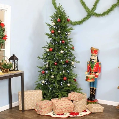 The artificial slim and stately Christmas tree offers a more space-conscious profile combined with classic lines for areas where space is limited in your living area. The hinged branches allow the tree to be easily assembled and fluffed to whatever fullness desired. The branch tips are designed to form a realistic, full, evergreen tree look made from a polyethylene and PVC blend for long-lasting beauty and strength. Additionally, there is less maintenance involved when taking care of an artificial tree: unlike natural trees, artificial ones don’t have to be watered and branches can be adjusted/moved without breaking to fit favorite decorations and fragile ornaments. To put the tree together, simply insert the bottom portion into the stand, insert the middle and top sections, and carefully fluff the tree for fullness. Place this tree in your living room, bedroom, basement, front porch, or anywhere else that needs Christmas charm and a beautiful, intimate piece of decor.