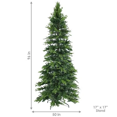 The artificial slim and stately Christmas tree offers a more space-conscious profile combined with classic lines for areas where space is limited in your living area. The hinged branches allow the tree to be easily assembled and fluffed to whatever fullness desired. The branch tips are designed to form a realistic, full, evergreen tree look made from a polyethylene and PVC blend for long-lasting beauty and strength. Additionally, there is less maintenance involved when taking care of an artificial tree: unlike natural trees, artificial ones don’t have to be watered and branches can be adjusted/moved without breaking to fit favorite decorations and fragile ornaments. To put the tree together, simply insert the bottom portion into the stand, insert the middle and top sections, and carefully fluff the tree for fullness. Place this tree in your living room, bedroom, basement, front porch, or anywhere else that needs Christmas charm and a beautiful, intimate piece of decor.