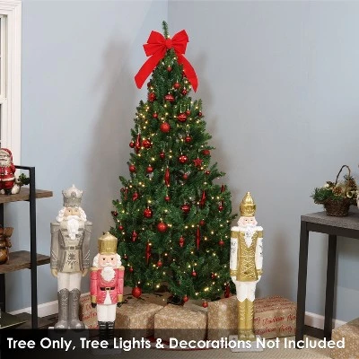 Bring the family together this holiday season and enjoy this life-like, faux, unlit evergreen tree. It is made from sturdy PVC and steel to resemble a kingswood fir tree. It is sure to bring natural beauty to your home this holiday season with its realistic firs and triangle shape. This tree is quick and easy to assemble as well! Simply unfold the steel stand, secure the two tree pieces together by stacking them on top of each other, and fluff out the branches so that your tree looks full and ready for decorations. All that is needed are lights and ornaments and you’re ready to rock around the Christmas tree. No vacuuming or watering is required, so you can keep this beauty green with no effort. After the holidays are over, simply take the tree apart, fold the hinged branches toward the center, and place it back in the box for next year.