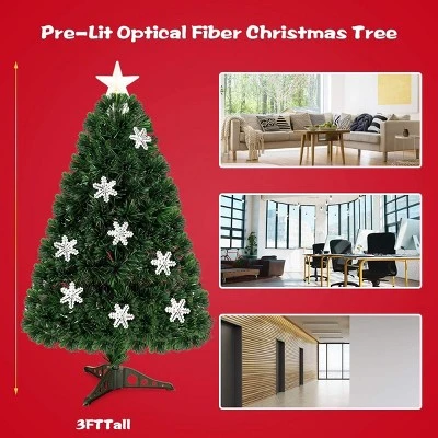 - Pre-lit Optical Fiber with UL-listed LED lights: This Christmas tree comes with 12 warm white LED lights and features premium fiber optic ornaments, brightening your space and adding a lively and happy festive glow to your home.