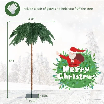 This realistic palm tree consists of 813 dense branch tips and 250 LED lights, creating a vivid and complete look, and you can add additional decorations as required. Our Christmas tree is unlike others, featuring a unique palm tree look to add a touch of tropical charm to your space. It is perfect as a garden, patio or porch landscape, or as a party or holiday decoration. Thanks to the high quality PVC material, our Christmas tree is flame retardant and evergreen throughout the seasons. In addition, we provide a metal base to support the led lighted palm tree stand stably. Our Christmas tree is easy to assemble and store in a sectional design, so you can have a satisfying palm tree in just a few steps. Besides, the Christmas tree’s hinged structure enables the branches automatically slide into designated places, and we provide a pair of gloves to help you.