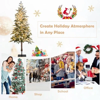- Snow Flocked & Realistic Appearance: The full-bodied pencil tree with snow flocked branch tips create a unique wintry feel. Its branch tips are made of 100% new PE material, which is odorless and durable, thus this tree can keep its beautiful appearance for a long time.