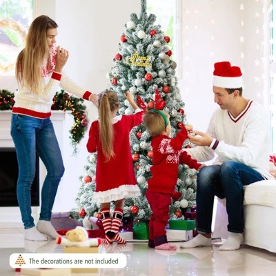 Welcome Christmas with this wonderful snow-flocked & realistic tree. This snow-flocked Christmas tree will never let you down, in particular to those who love the natural ice world. Snow-flocked leaves create a unique wintry feel. Hinged branches are easily fluffed to create a beautiful, full-bodied look and make any corner a new look. Generally speaking, it is sure to be a perfect festival decoration in room, office, café and more. You can use your imagination to decorate the Christmas tree with your family according to your interests and hobbies, and create fun & precious memory together.