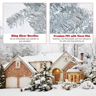 - 【Premium PVC with Tinsel Film】 Made of environment-friendly PVC with tinsel film, this Christmas tree are harmless to human body for safe use. With exquisite craftsmanship, it is odorless, non-flammable and not deformed to provide you with long-term service.