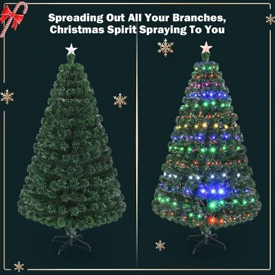 - Fiber Optic Settings: Our Christmas tree is equipped with multi-colored fiber optics that are energy-efficient and long lasting to make your tree more shiny at night and give you a warm and nice holiday.