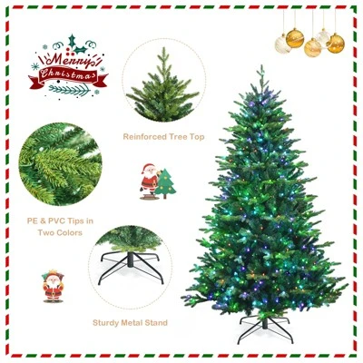 - 【Stylish Christmas Decoration Tree】 This is our 7 feet tall artificial Christmas tree that trimmed with colorful LED lights. You can image how cool the tree would be when all lights are shining in the darkness. It’s suitable for both residential and commercial places to create different party atmospheres.