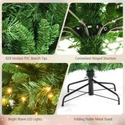 We adopt premium PVC material to ensure the safety of use. It is non-flammable and non-allergenic with good texture and bright color for long-time use. The natural-looking artificial tree is consisted of 452/ 806/ 98 branch tips, 39/62/75 groups of pine cones and red berries, which are leafy to create a full-bodied appearance. 150/ 250/ 350 warm LED lights will bring a festival glow to your room. And hinged branches and foldable metal stand make it easy to setup and tear-down. Its slim pencil shape is unique and make the tree ideal for home, apartment, dorm room, shop and more.