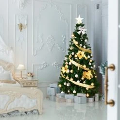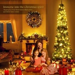 - Holiday Cheer – Inspire holiday cheer in your home, office, holiday party, and more with a pre-lit slim Christmas tree that helps make the season feel complete. Hang on your favourite ornaments such as a bauble, snowflake, candy cane, pine cone, stocking, Christmas bell, Santa Clause, gingerbread man, bow and Christmas light. It will create a happy and prosperous festive atmosphere to you.