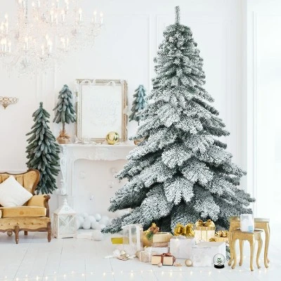 - 【Create a Joyful White Christmas Memory】 Snow flocked Christmas tree makes it possible to help you create joyful white Christmas atmosphere even in a warm place. Layered design, combining the white snowing look with flourishing leaves, enables the tree to be an eye-catching decoration in any corner.
