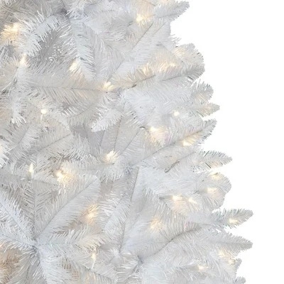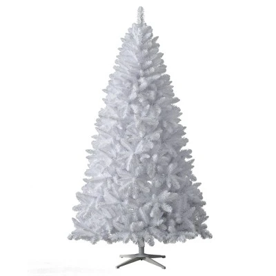Elevate your Christmas decorations and create your own winter wonderland with the Winter White Artificial Christmas Tree from Treetopia. This 7-foot tree has a densely-packed, full silhouette that makes it a stunning eye-catcher in any area of your home.The Winter White Tree is covered with 450 LED lights which give out a warm, candlelight glow. These lights are professionally hand-strung and come with an easy-to-control On/Off foot pedal. The tree’s lights are UL-listed which means even if a single bulb runs out, the rest still remain lit. This unique tree is 7 feet tall with a width of 49 inches, perfect for lighting up the corner of the living room or family room.With individually crafted branch tips, this tree looks like the real thing. Each branch is hinged to allow for a fast and easy setup when it comes time to decorate. With your purchase, you will receive a premium tree stand with a color that complements that of the tree. Extra bulbs and fuses are also included to quickly repair broken lights down the line.Add a frosty feel to your Christmas celebration with the Winter White Artificial Christmas Tree from Treetopia.