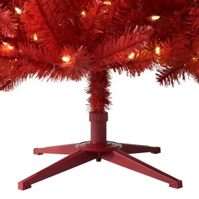 Elevate your Christmas decorations with the Lipstick Red Artificial Pre-lit Christmas Tree from Treetopia. This 5-foot tree has a densely-packed, full silhouette that makes it a stunning eye-catcher in any area of your home.This vibrant red artificial tree is the perfect canvas to display your treasured ornaments and holiday heirlooms through the season. The 300 clear LED lights create a warm, twinkly effect, making your bobbles, beads, and decorative elements sparkle. With 671 individual branch tips, you’ll spend less time fussing to fill blank spaces, and more time enjoying your seasonal display with family and friends.Add peace of mind to your holiday celebrations with the hassle-free UL-listed lights that leave the string shining, even if 1 bulb goes out, and feature a lamp-locking system that prevents loose bulbs. Quick to set up with hinged branches and professionally hand-strung lights with colored wire to match the foliage, you’ll be able to start decorating and making memories in no time.Grab some corn for popping, turn the lights way down low, and make lasting holiday memories with the Lipstick Red Artificial Pre-lit Christmas Tree from Treetopia.