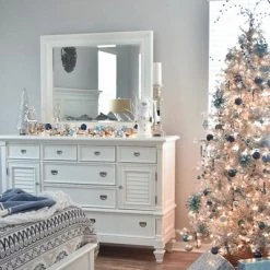 - NO MAINTENANCE: Pre-lit with 450 clear LED bulbs, this artificial tree adds an elegant holiday feel without the maintenance of cleaning up pine needles or remembering to water