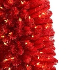 Elevate your Christmas decorations with the Lipstick Red Artificial Pre-lit Christmas Tree from Treetopia. This 6-foot tree has a densely-packed, full silhouette that makes it a stunning eye-catcher in any area of your home.This vibrant red artificial tree is the perfect canvas to display your treasured ornaments and holiday heirlooms through the season. The 450 clear LED lights create a warm, twinkly effect, making your bobbles, beads, and decorative elements sparkle. With 981 individual branch tips, you’ll spend less time fussing to fill blank spaces, and more time enjoying your seasonal display with family and friends.Add peace of mind to your holiday celebrations with the hassle-free UL-listed lights that leave the string shining, even if 1 bulb goes out, and feature a lamp-locking system that prevents loose bulbs. Quick to set up with hinged branches and professionally hand-strung lights with colored wire to match the foliage, you’ll be able to start decorating and making memories in no time.Grab some corn for popping, turn the lights way down low, and make lasting holiday memories with the Lipstick Red Artificial Pre-lit Christmas Tree from Treetopia.