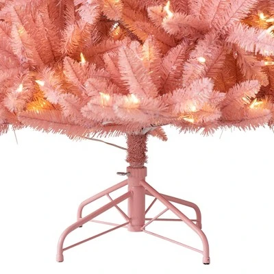 - FULL PROFILE: Full profile artificial tree standing 6 feet tall is durable to last for years; Includes a matching pink stand tree base and an on and off foot pedal