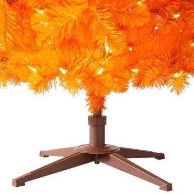 Elevate your Christmas decorations with the Sunset Orange Artificial Pre-lit Slim Christmas Tree from Treetopia. This 6-foot tree has a densely-packed, narrow silhouette that makes it a stunning eye-catcher in any area of your home.This vibrant orange, pencil-thin artificial tree is the perfect canvas to display your treasured ornaments and holiday heirlooms through the season. The 300 clear LED lights create a warm, twinkly effect, making your bobbles, beads, and decorative elements sparkle. With 486 individual branch tips, you’ll spend less time fussing to fill blank spaces, and more time enjoying your seasonal display with family and friends.Add peace of mind to your holiday celebrations with the hassle-free UL-listed lights that leave the string shining, even if 1 bulb goes out, and feature a lamp-locking system that prevents loose bulbs. Quick to set up with hinged branches and professionally hand-strung lights with colored wire to match the foliage, you’ll be able to start decorating and making memories in no time.Grab some corn for popping, turn the lights way down low, and make lasting holiday memories with the Sunset Orange Artificial Pre-lit Slim Christmas Tree from Treetopia.