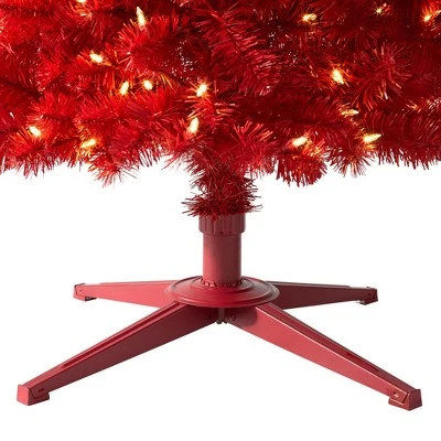 Elevate your Christmas decorations with the Tango Red Lipstick Artificial Pre-lit Pencil Christmas Tree from Treetopia. This 7-foot tree has a densely-packed, narrow silhouette that makes it a stunning eye-catcher in any area of your home.This vibrant red, pencil-thin artificial tree is the perfect canvas to display your treasured ornaments and holiday heirlooms through the season. The 300 clear LED lights create a warm, twinkly effect, making your bobbles, beads, and decorative elements sparkle. With 569 individual branch tips, you’ll spend less time fussing to fill blank spaces, and more time enjoying your seasonal display with family and friends.Add peace of mind to your holiday celebrations with the hassle-free UL-listed lights that leave the string shining, even if 1 bulb goes out, and feature a lamp-locking system that prevents loose bulbs. Quick to set up with hinged branches and professionally hand-strung lights with colored wire to match the foliage, you’ll be able to start decorating and making memories in no time.Grab some corn for popping, turn the lights way down low, and make lasting holiday memories with the Tango Red Lipstick Artificial Pre-lit Pencil Christmas Tree from Treetopia.