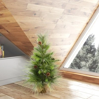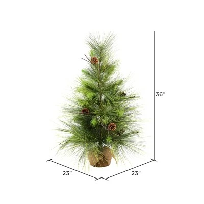 Vickerman Boulder Pine Artificial Christmas Tree featuring PVC/Hardneedle Tips. This Tree features a blend of PVC and natural looking Hardneedle tips with realistic pine cone accents.