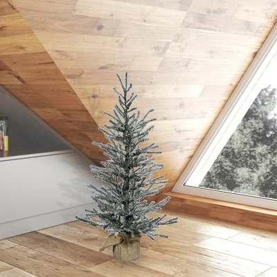 Vickerman Frosted Angel Pine Artificial Christmas Tree featuring PVC tips. This beatuiful tree comes unlit, has frosty green PVC tips, and is fixed in a decorative burlap nase. It’s the perfect accent to any holiday décor.
