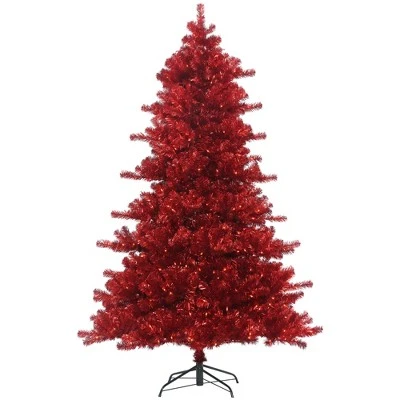 Vickerman 9′ x 62″ Artificial Ruby Red Pine Christmas Tree with 2697 PVC tips and 1000 Dura-Lit® LED Red Mini Lights, comes with a Folding Metal Stand